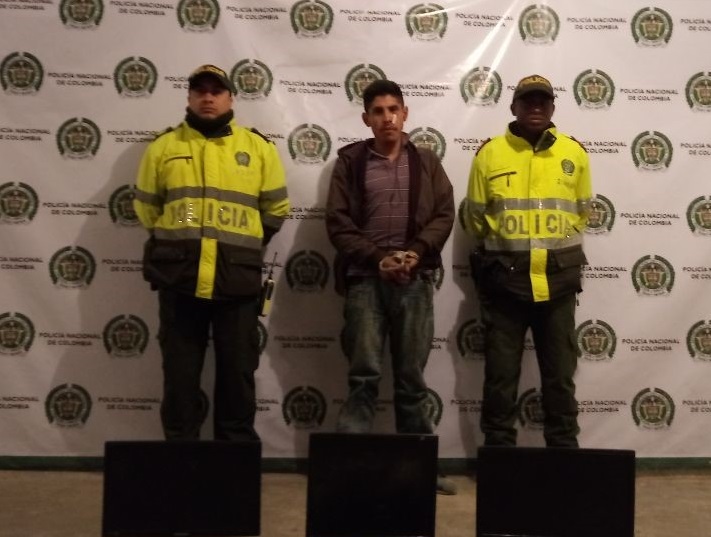 Al notar la presencia de la patrulla de Policía, el hombre de 26 años de edad emprendió la huida lanzándose desde el techo de un local de giros, mientras llevaba en hombros un costal. Al interceptarlo y practicarle un registro, los uniformados le hallaron los cuatro monitores que había extraído del establecimiento.